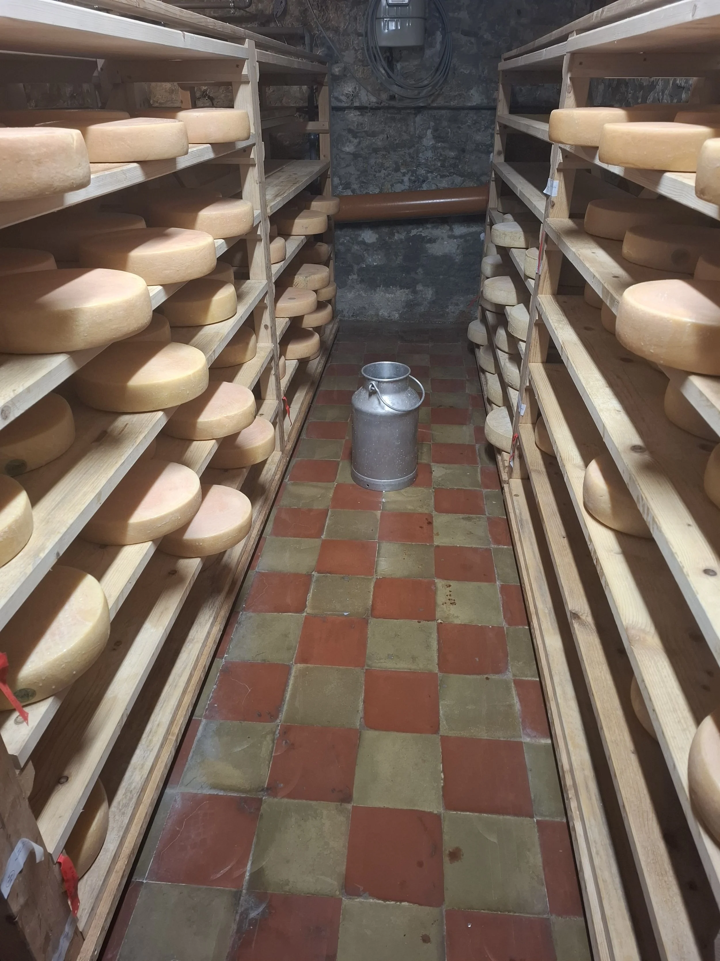 Aujourd’hui, je dispose d’un véritable espace d’affinage : près de 50 m² de caves enterrées, entièrement dédiées à l’accueil et au soin des fromages que je fabrique. Cet espace me permet de travailler sereinement, de gérer différentes phases d’affinage et de laisser chaque fromage évoluer à son rythme, dans des conditions adaptées. Ces caves sont devenues le cœur du projet, l’endroit où le temps et le savoir-faire font leur œuvre.